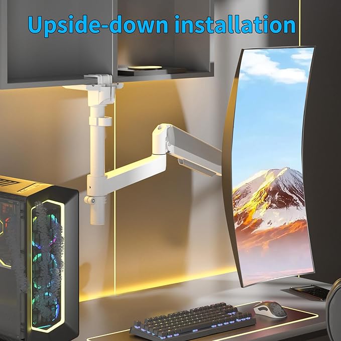 - High-Quality Desk Mount: Constructed with sturdy materials like high quality steel and aluminum, it has passed 30,000 motion tests to ensure long-lasting durability and reliable performance.Besides,featuring a bionic cantilever that rotates smoothly and hovers freely for monitor stability. The premium spring assist arm counterbalances monitor weight for ergonomic height adjustments, making it ideal for office,home and gaming setups and ensuring worry free use