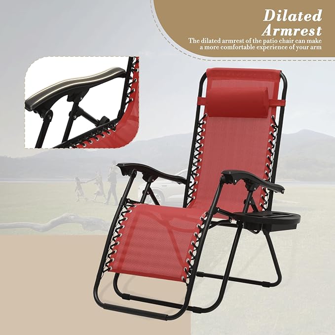 - Detachable Tray and Headrest: Includes a sturdy BPA-free plastic accessory tray that securely attaches to the lawn chair arm for convenient access to drinks, reading materials, and electronic devices. It also feature a multi-directional headrest that pivots and slides to relieve cervical pressure.