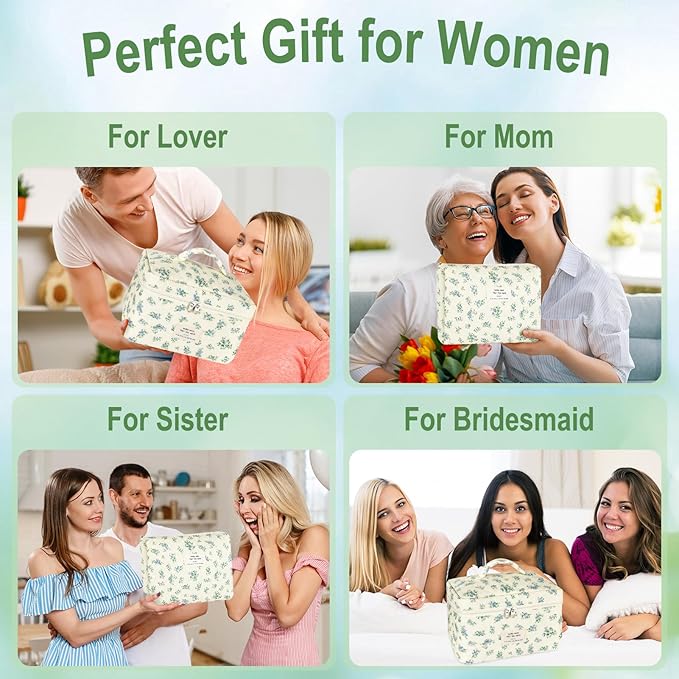 - Unique Design:This 3-piece cosmetic bag set is adorable. Its unique quilted design is both fashionable and practical for travel. The smooth zipper closure makes floral bag set perfect for storing daily skincare and makeup. Whether you need a pocket-sized bag or a single-use shopping companion, this floral makeup bag is versatile and functional