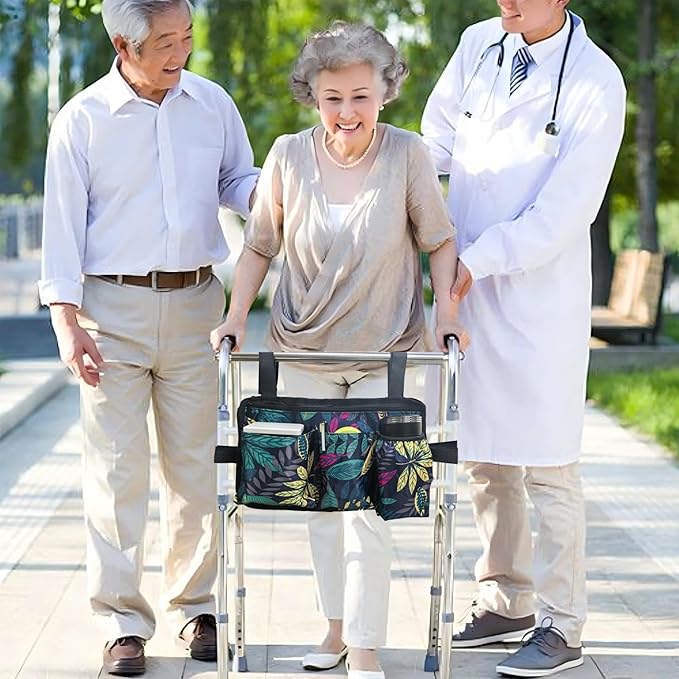 Wheelchair Side Bag with Cup Holder, Wheelchair Armrest Pouch Accessories for Walker, Rollator, Electric Scooter Wheelchairs (Maple Leaves, 13.8X8 Inch)