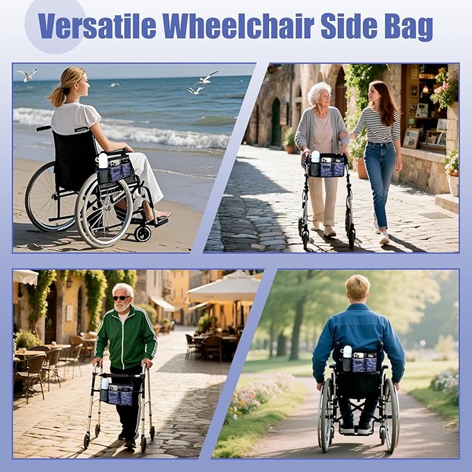 - 【Multifunctional】This wheelchairs bag also doubles as a cup holder, with an elastic band pocket that securely holds your drink without worrying about spills.