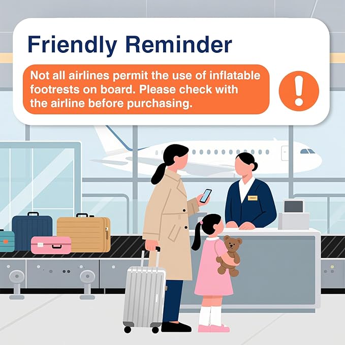 - Airline Restrictions Notice: Please note: Emirates, Korean Air, Asiana Airlines, Hawaiian Airlines, Virgin Atlantic, Air France, Air Malta, EgyptAir, and Qantas do not allow this inflatable foot rest onboard. For other airlines, confirm carry-on approval with staff before your flight.