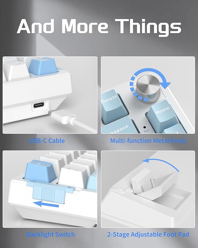- HOT-SWAPPABLE SOCKET & PRE-LUBED CUSTOM SWITCHES: This 75% mechanical keyboard is compatible with 3-pin or 5-pin switches, allowing you to personalize your keyboard. The switches are individually removable and can be replaced in seconds. The SKY81 keyboard utilizes MageGee's finely tuned switches, which are pre-lubricated at the factory and built to last up to 70 million keystrokes for responsive and creamy typing.