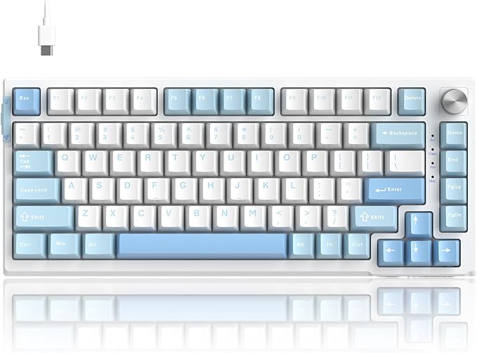 MageGee SKY81 75% Mechanical Gaming Keyboard, Hot Swappable Wired Custom Creamy Keyboards with 5-Layer Sound Dampening, Knob Control, RGB Backlit, NKRO for Win/Mac (Ice Sea Blue, Pink Bear Switch)