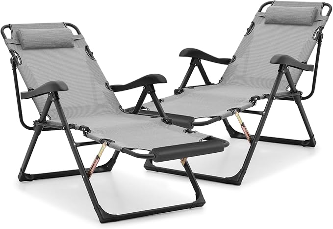 - Comfort: The folding chaise lounge chair set of 2 offers adjustable recline angles and a cushioned headrest for ultimate relaxation. Its ergonomic design improves circulation and reduces spinal pressure.