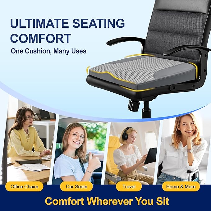 - Upgraded Car Seat Cushion - Classic colors, stylish patterns, and ergonomic design give this car seat cushion for pad for car driver seat a sleek and professional look. We use premium PU leather, which is breathable, durable, and easy to clean. Comfort is everywhere, you can use our seat cushion for truck driver, office chairs, wheelchairs, etc