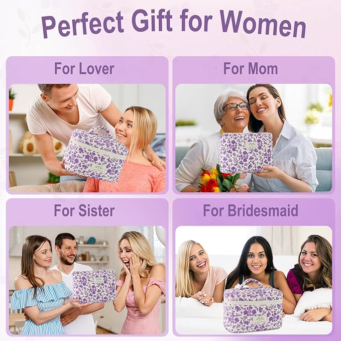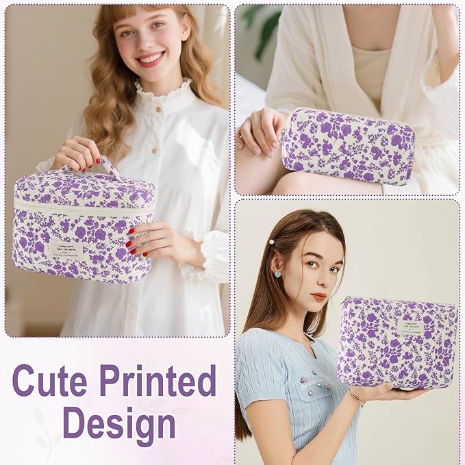 - PERFECT GIFT: The cotton quilted makeup bag is an ideal choice for travel, vacation, school, camping, bathroom organization, and other outdoor activities, is also very suitable as a present for your friends, family or someone else you like. This flip cosmetic bag is the best trendy birthday gift for women and your family