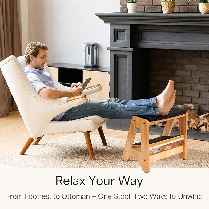 - Strong & Stable Build – Crafted from premium hardwood with reinforced supports, this double step footrest holds up to 300 lbs and stays steady without wobbling, giving reliable strength for daily foot support.