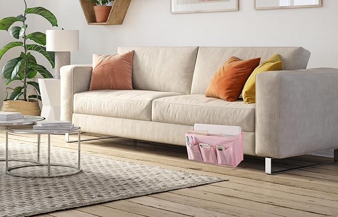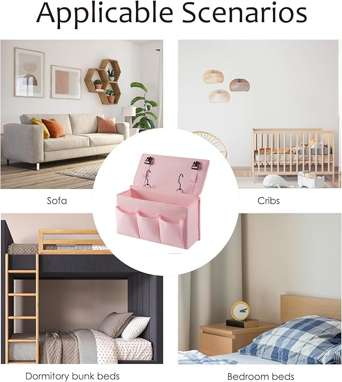 Bedside Caddy Bedside Storage Organizer,Bed Caddy With Thickened Material Suitable for Homes, Dormitories, Hospitals, Cribs, RVs,Great for Magazines,Books,Remote, Phone (Pink)