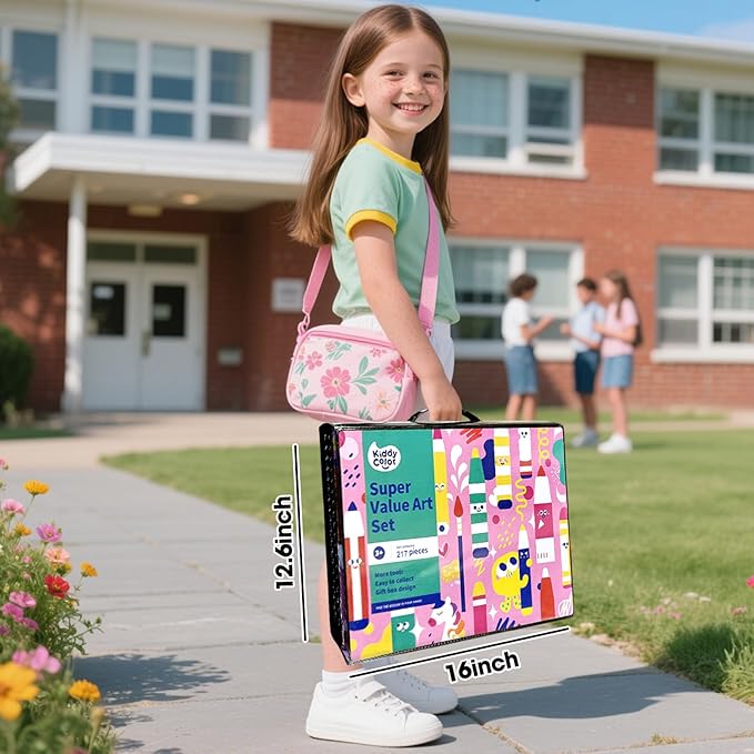 - Portable & Organized Case for On-the-Go Creativity - Designed for convenience, this kids’ drawing set fits all 217 pieces into a compact, durable case with a comfortable carrying handle. Interior elastic straps and divided compartments keep crayons, pastels, and pens neatly organized—no more lost or scattered supplies. Lightweight enough for kids to carry to school, playdates, vacations, or park trips, it lets young artists draw inspiration anywhere.