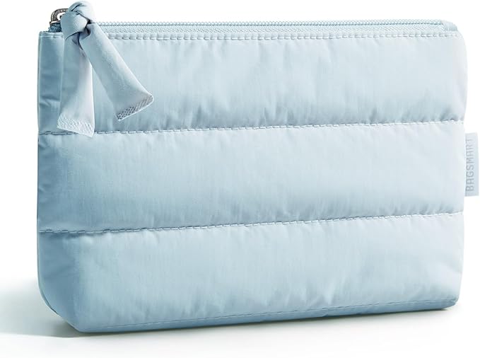 BAGSMART Small Makeup Bag, Puffy Portable Cosmetic Pouch with Charm Zipper, Water-Resistant Travel Organizer for Women (Baby Blue, Small)
