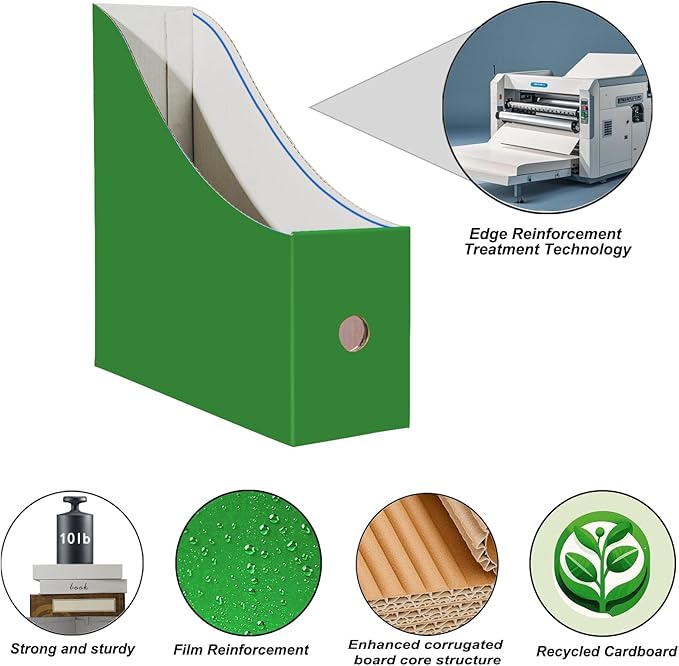 Limitliho 2 Pack Cardboard File Storage Box with Label, Grass Green Book Holder for Classroom,Office,Home,Magazine Organizer for Desk(10.6" H x 10.2" L x 3.5" W in)