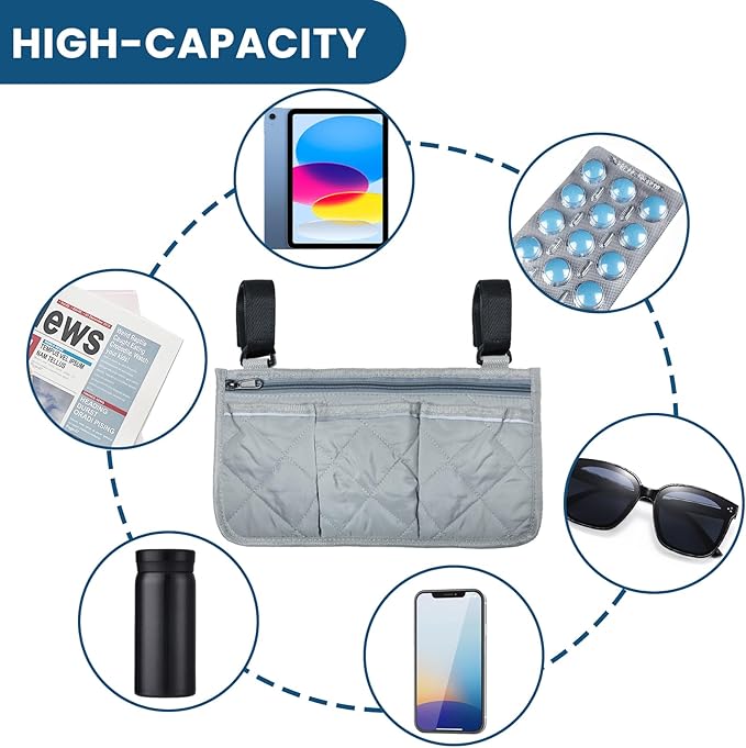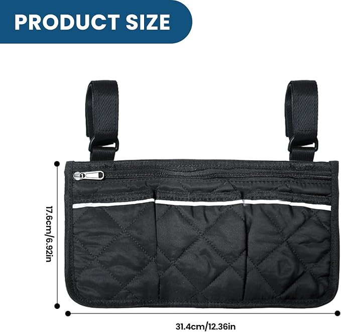 - 【Wide Application】: Designed to provide convenience for wheelchair users, this side bag is not only practical for daily life but also ideal for travel; Its universal design fits most wheelchairs, walkers, rollators, and scooters, offering adaptable storage solutions wherever needed