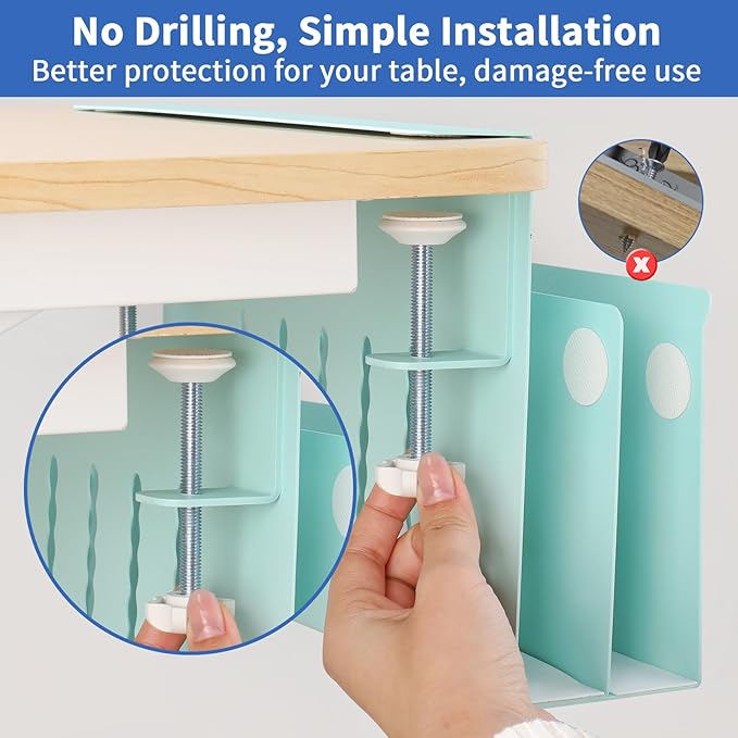 - No Drilling & Easy To Install: Our under desk laptop mount, side desk laptop holder is easy to install. And the silicone cushion can prevents scratches on desks and other objects, the rounded corners design can also avoid scratches. No extra tools are needed and importantly it won't damage your desk. It only took you 2 minutes to install our clamp on desk organizer to your desk