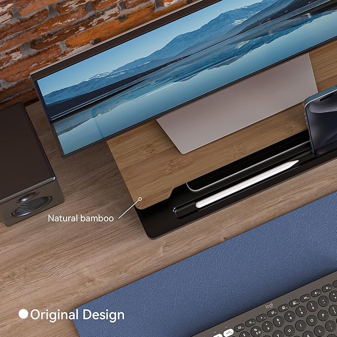 - 【Built to Last with Premium Materials】 Crafted from natural bamboo and high-density MDF panel, this monitor riser offers a sleek, modern look while supporting up to 110 lbs—ideal for monitors, all-in-one PCs, or heavy displays