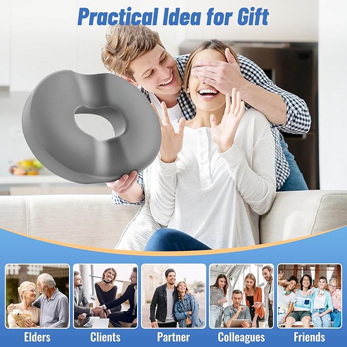 - Relieve Sedentary Discomfort: Whether you have a desk job or spend long hours sitting, sedentary discomfort is a real issue. Prolonged sitting can lead to a variety of health problems, including lower back pain, hip pressure, and even sciatica. CloudBliss donut pillow is your answer to finding relief from these issues. Its innovative design distributes weight evenly, reducing pressure on the spine and promoting proper posture