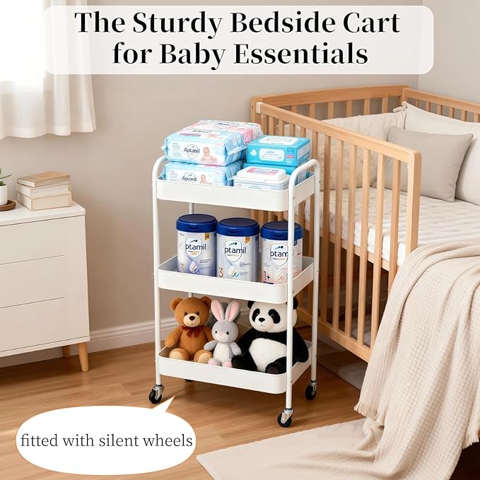 - 【Multi-Functional Laundry Cart Organizer on wheels】LIWNYRK white rolling car has three tier, allowing it to hold a lot of items while minimizing floor space usage. So it’s ideal for nursery or bathroom, also can use it as a lash cart organizer for lash techs