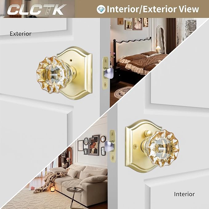- 【Application】The crystal door knobs can be locked using the thumb button function from inside, and be unlocked from the outside with Allen key in emergency. Ideal for bathroom/bedroom