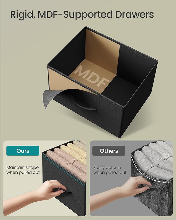 - Stability and Safety Ensured: This fabric dresser comes with adjustable feet to prevent wobbles on slightly uneven floors and an anti-tip kit for safety, ensuring peace of mind