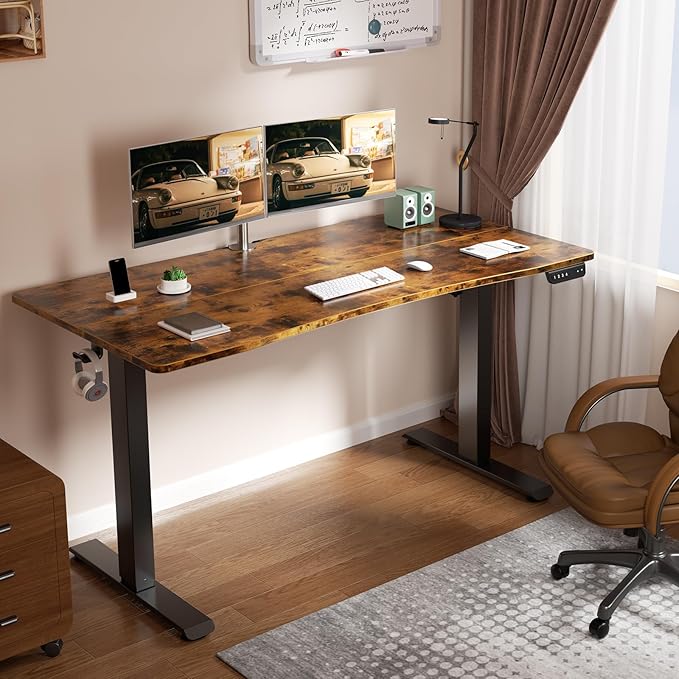 Veken 55 x 28 Inch Electric Standing Desk with Adjustable Height, Sit to Stand Computer Table for Study, Work or Gaming, Home Office Desk Brown