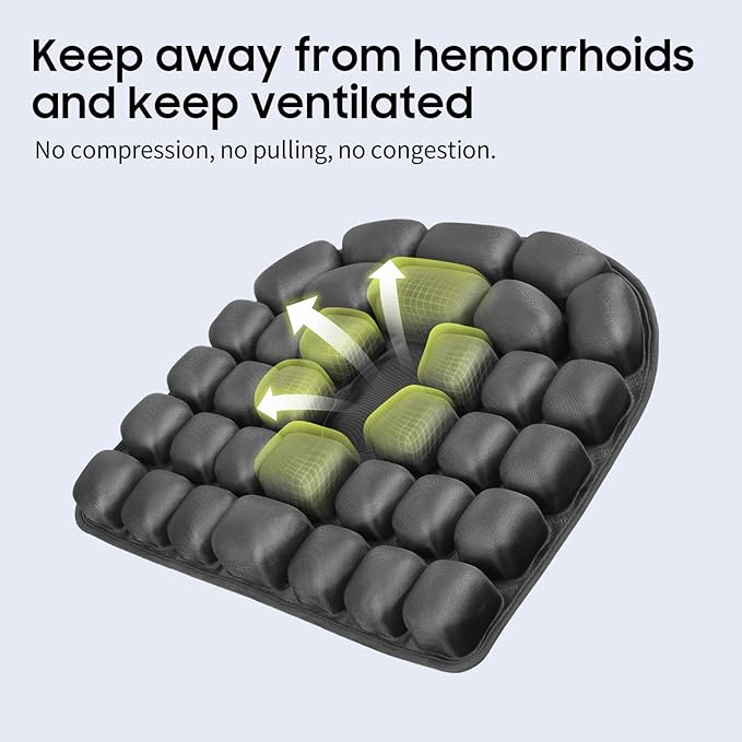 - Designed for comfy simplicity, this air seat cushion provides relief during long flights or daily use. The black, sleek design blends seamlessly with any setting, from airplanes to home offices.