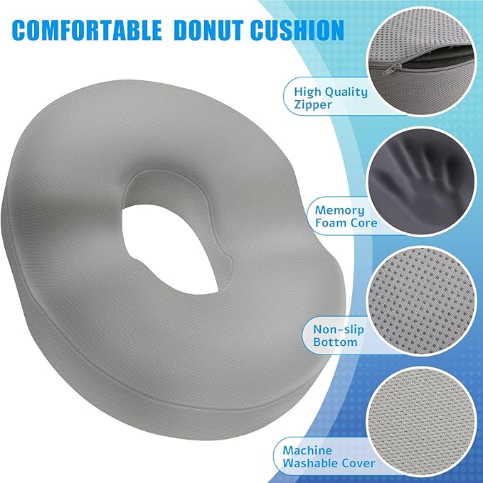 BlissTrends Donut Pillow Seat Cushion, Donut Chair Cushions for Postpartum Pregnancy & Hemorrhoids, Tailbone Pain Relief Cushion, Lifting Cushions for Office & Home Chairs (Light Grey, X-Large)