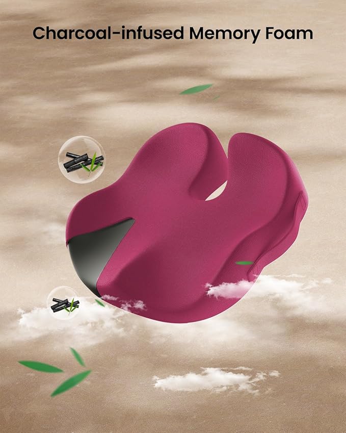 ProtoArc Seat Cushion, Office Chair Cushion for Sciatica, Coccyx Cushion, Ergonomic Memory Foam Seat Cushion for Car, Home, Pressure Relief Pad for Hip, Tailbone, All Day Comfort - Rose