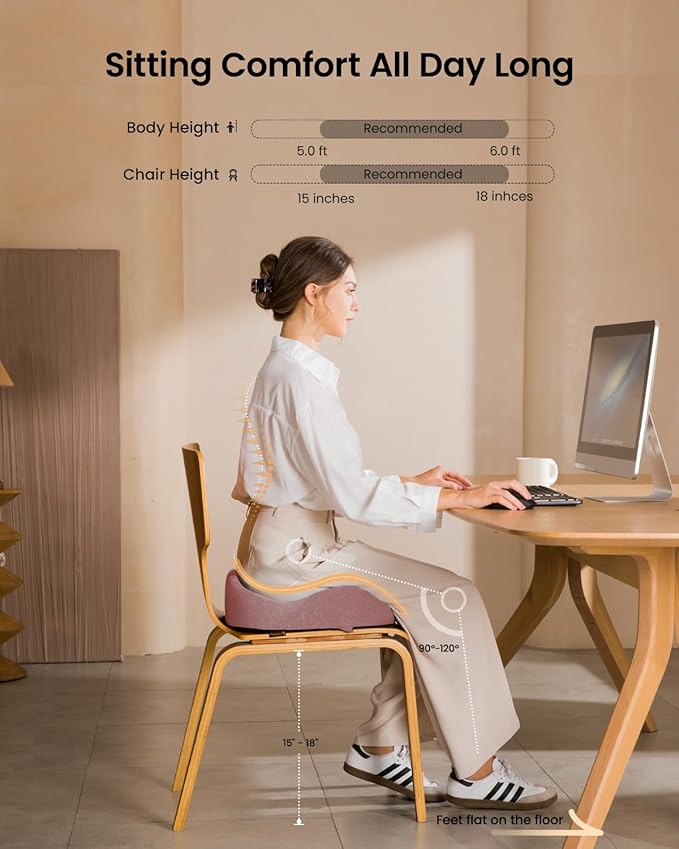 - Pressure Relief Seat Cushion: Split design targets pressure points on hips, thighs, coccyx for relief from lower back, hip discomfort, promoting proper posture. Ideal for long hours seated, offers relief from back and hip