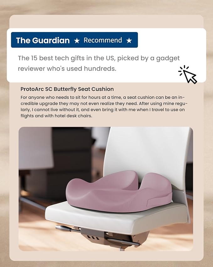 - Take Comfort Anywhere: ProtoArc seat cushion relieves lower back and hip discomfort, perfect for road trips, exercise, gaming. Standard size fits all body shapes, suitable for car seats, office chairs, wheelchairs, ensuring superior support and comfort anytime, anywhere
