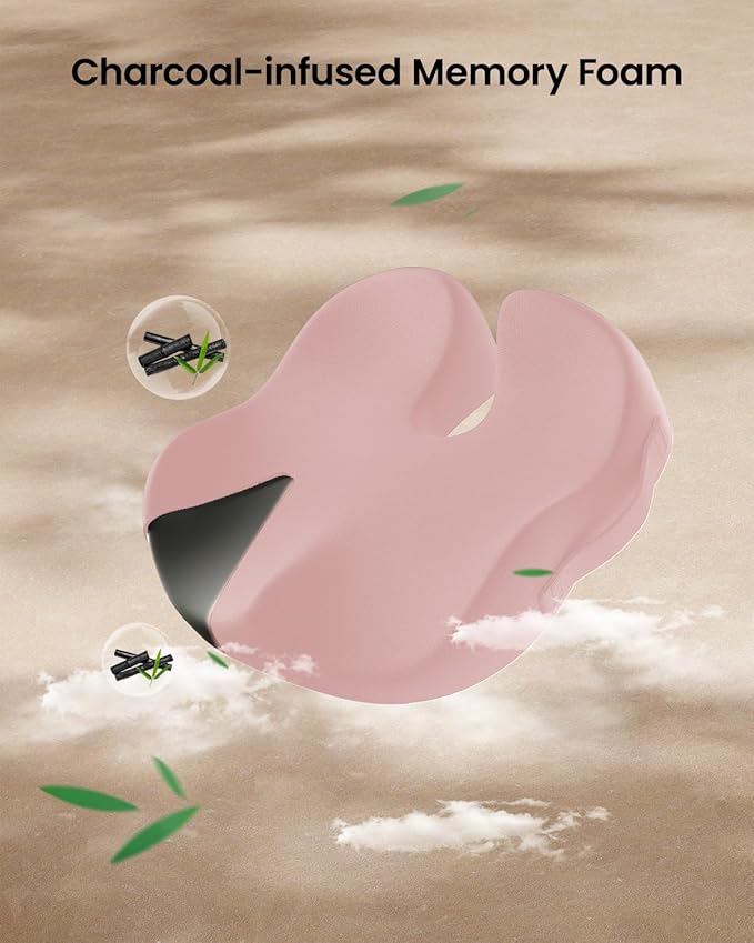 ProtoArc Seat Cushion, Office Chair Cushion for Sciatica, Coccyx Cushion, Ergonomic Memory Foam Seat Cushion for Car, Home, Pressure Relief Pad for Hip, Tailbone, All Day Comfort - Pink