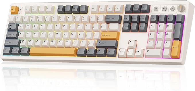 Wireless Mechanical Keyboard,104 Keys 100% Full Size with Number Pad,Gasket Mounted Creamy Sound,Hot Swappable,Knob& Media Keys,Bluetooth/2.4GHz/USB-C for Gaming/Typing/Win/Mac/PC (Retro Beige)