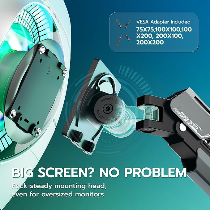 - Ultrawide Monitor Arm – Supports 24"-57" displays with 52.8lbs (curved)/66lbs (flat) max capacity, Includes VESA adapter kit (75x75 mm, 100x100 mm, 100x200 mm, 200x100 mm and 200x200 mm VESA patterns), compatible with Samsung Odyssey G9,LG, and other Ultrawide monitors (Note: Non-VESA displays require vesa adapter, it always comes with your monitor package)