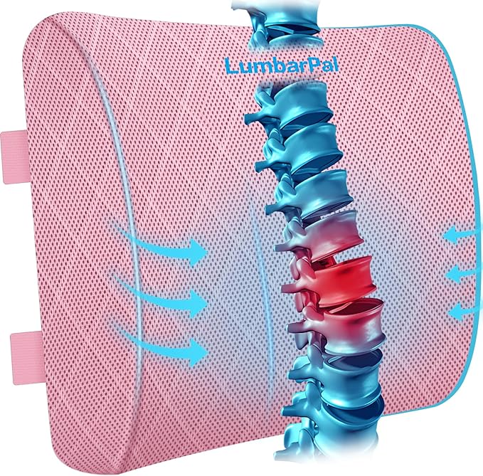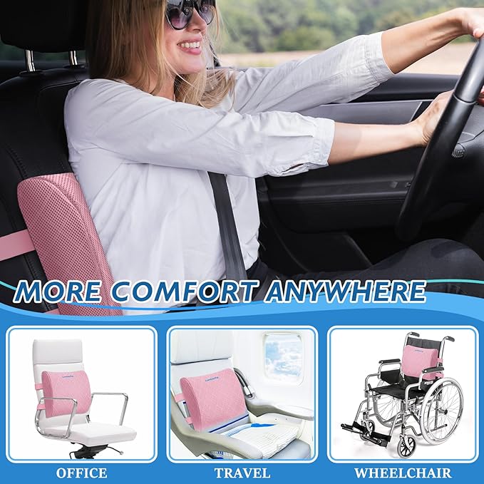 Lumbar Support Pillow for Office Chair Back Support Lumbar Pillow for Car, Gaming, Office Chair - Improve Sitting Posture & Back Pain Relief, Memory Foam, Adjustable Straps, Pink