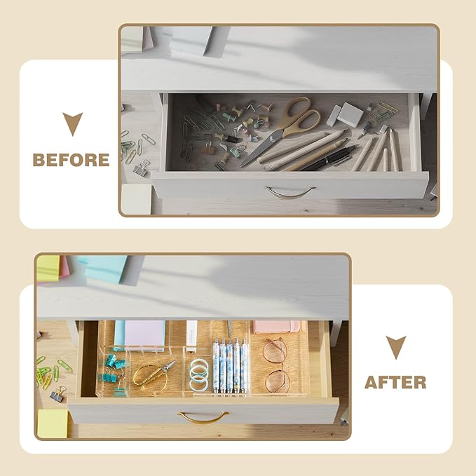 - Ease to Clean: the key feature of this acrylic drawer organizer is its easiness to clean; Just an easy wipe using a damp cloth can bring out its clean look again; Unlike wooden or bamboo organizers, it won't rot over time, ensuring durability