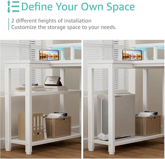 - Sturdy Structure With Monitor Stand: The monitor stand can meet your requirements for placing 2 monitors or laplops. It can keep your computer at eye-level, which helps you maintain the right posture for your neck and spinal health