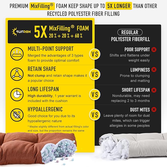 - 【Premium MIXFILLING Foam Technology】Bench cushion filled high-quality gel memory foam, premium responsive memory and high-density foam, Unique MIXFILLING technology, to help retain shape and maintain long-lasting, comfort and support, bench pads keep shape up to 5x longer than other recycled polyester fiber filling. Add the soft siliconized polyester non woven wrap layer inside cushion cover, provides extra plushness and loft, gives it a luxuriously full look.
