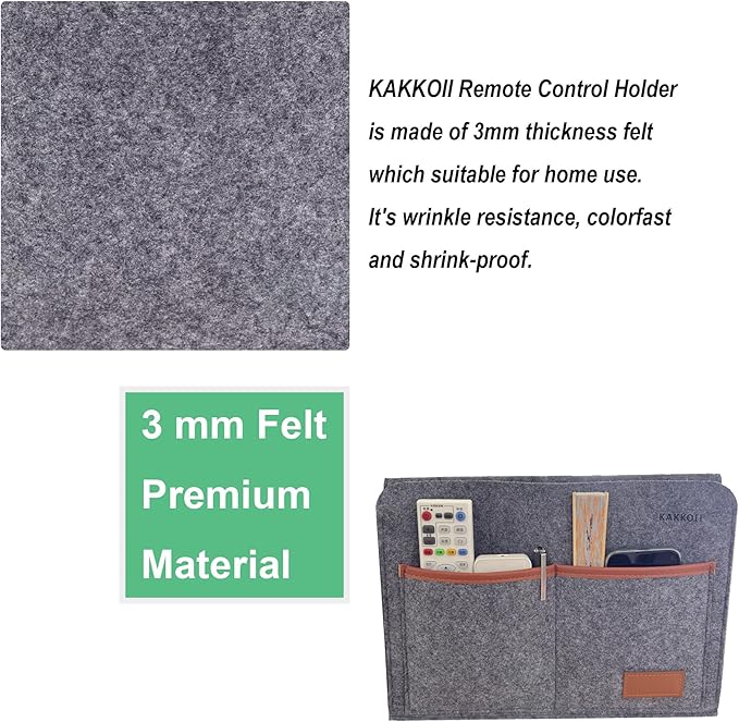 - Soft Material- KAKKOII remote control holder is made of 3mm thickness felt which suitable for home use. It's wrinkle resistance, colorfast and shrink-proof, sturdy and soft, ensuring it won't scratch or damage your belongings. It's designed with care to protect your possessions