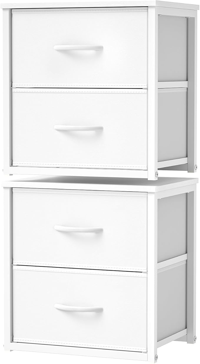 2-Pack Stackable Storage Drawers (4 Drawers Total), White Closet Organizer with Wooden Top & Metal Frame, Freestanding or Stackable Dresser for Bedroom, Living Room, Under Bed