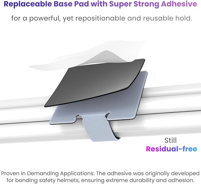 - ๐ฎ. ๐๐ฑ๐ต๐ฒ๐๐ถ๐๐ฒ ๐๐ฎ๐๐ฒ ๐ฃ๐ฎ๐ฑ: This is the key to effortless reusability. Simply replace the pad to reinstall the WrapLock Strap in a new location anytime, extending the product's lifespanโ and leaving no residue or damage behind.