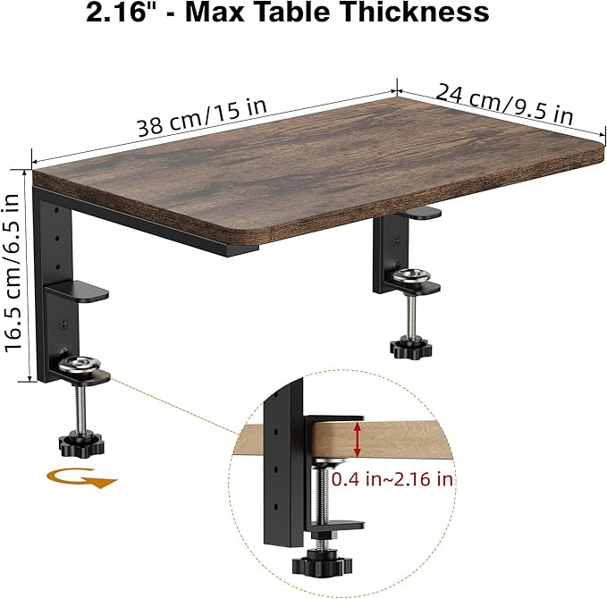 Desk Extender, 15-inch Clamp-On Desk Shelf, Height-Adjustable Desktop Shelf Organizer for Monitors Office and Gaming Accessories, Arm Support Table Extension, 44lbs Heavy Duty, Darkbrown