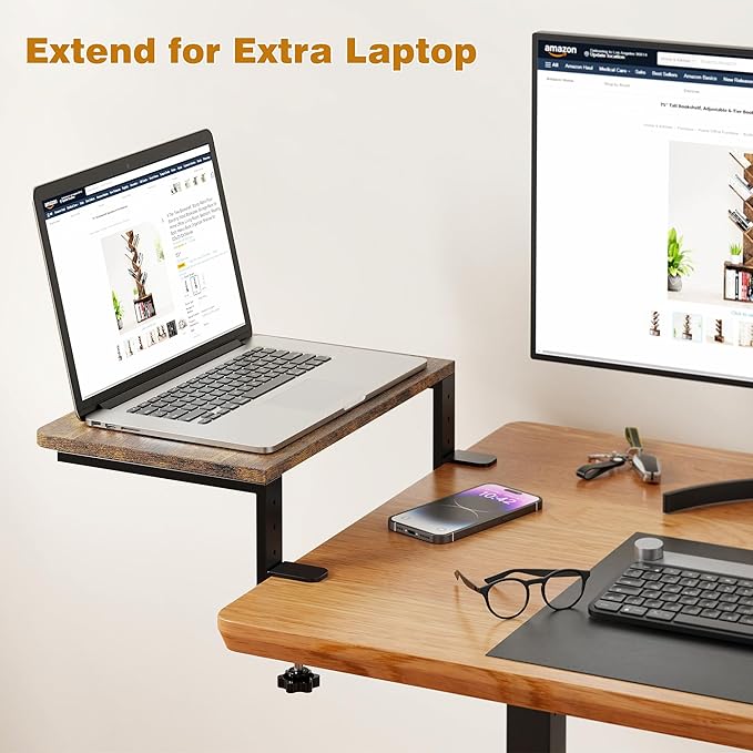 - Ergonomic Design Clamp Desk Shelf: The 6.5-inch height aligns with eye level, reducing neck and shoulder strain when elevating your monitor. The flush desk extender supports your arms to alleviate fatigue