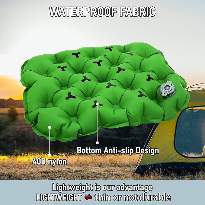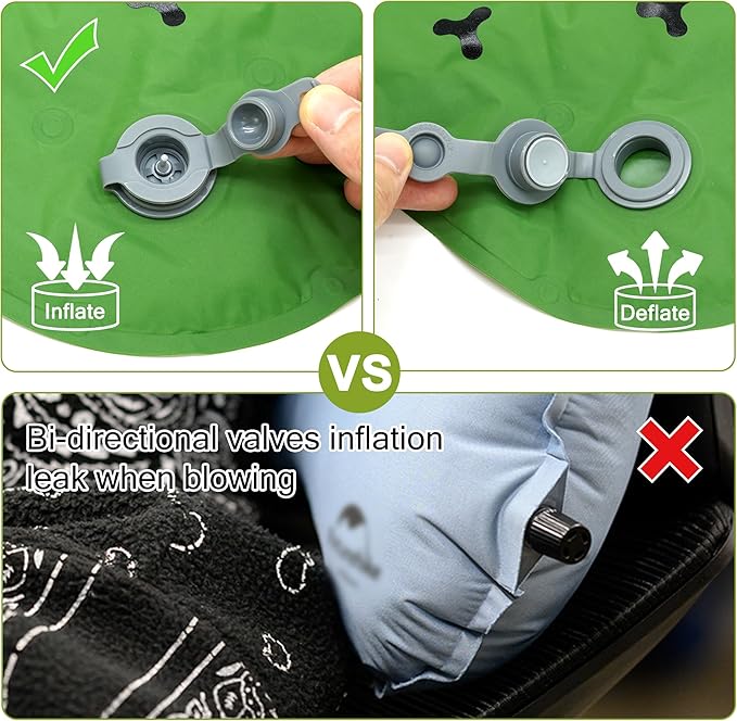 - 💓Designed Portable Cushions: Our cushions are designed with special materials: 40D nylon on the front and 70D nylon on the back, so the material on the back of the cushion is stronger and more tear-resistant, so the shape of the cushion will be a little twisted after inflation, but this does not affect the effect of the use of the cushion, but rather it is a strong evidence that the cushion is better quality.