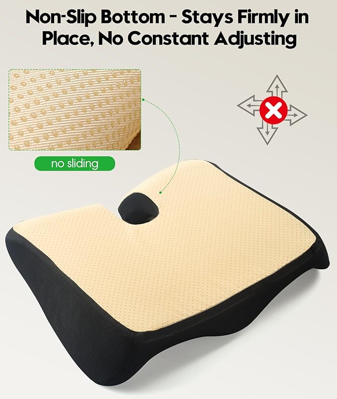 Ergonomic Office Chair Cushion – Gel Memory Foam Seat Pad with Non-Slip Cover, Pressure Relief for Long Sitting, Back Pain, Tailbone Support (Black)