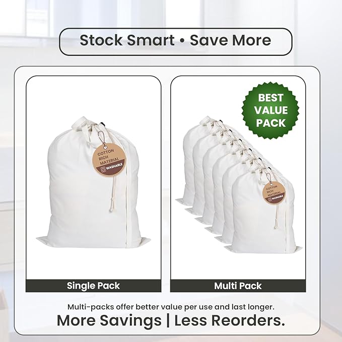 LFH Home Cotton Canvas Large Laundry Bag with Handle, Heavy Duty Drawstring Closure Washable Laundry Bags, School Travel, Home, Hotel, College Dorm, Organizer Sack, Toy Clothes 24x36 (Pack of 6)-White