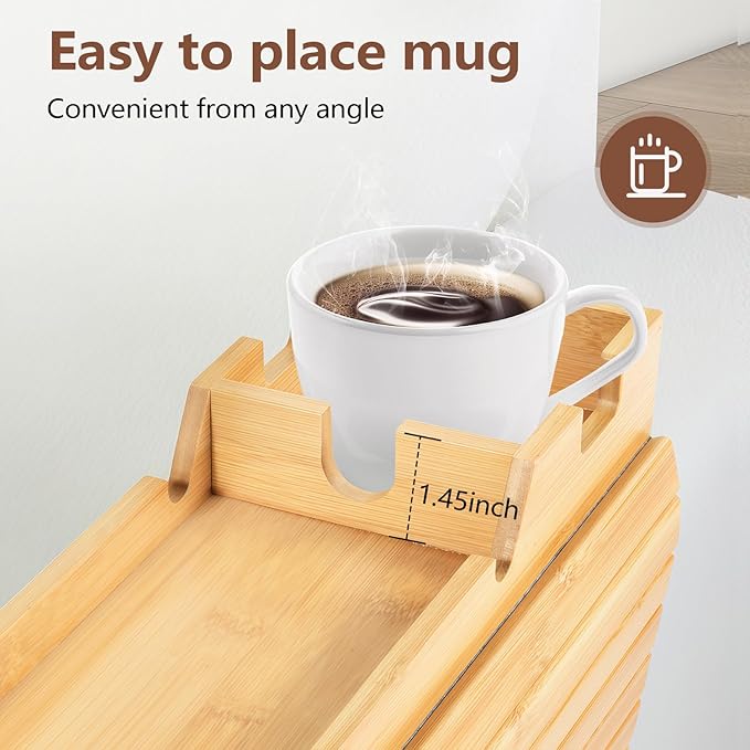 - Foldable & Anti-Slip Grip for Any Couch Armrest Featuring a foldable bamboo frame and non-slip pads, it securely fits all sofa armrest trays (4.7”–14” wide). No shakes—holds drinks, phones, and remotes steady on plush couches.