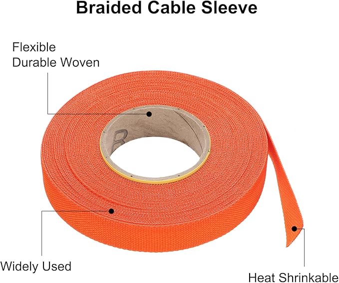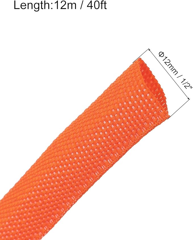 MECCANIXITY Braided Cable Sleeves Heat Shrinkable Fabric Sleeving, 1/2" 40ft Orange 2:1 Ratio Heat Shrinkable Cord Protector for Harness Cable, Network Cable Protection, Cable Management