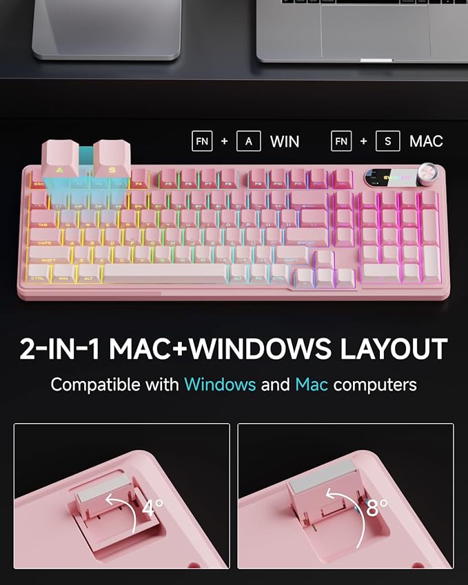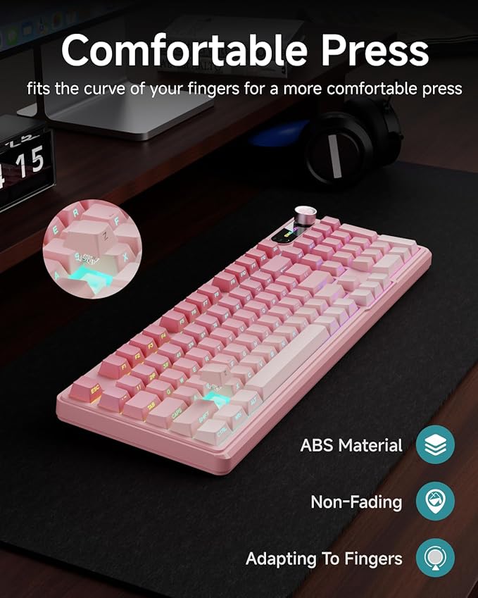 - 98-Key Compact Layout: The 98% layout silent keyboard combines a full-featured 98-key layout with a versatile rotary knob, saving space while providing all the functionality you need. Ideal for multitasking and compatible with Windows, Mac, Android, iOS, Xbox, PS4, and PS5—seamlessly switch between devices without missing a beat