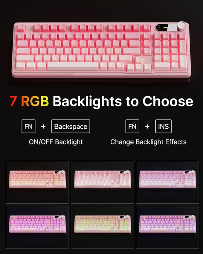 - Dedicated Knob & Display Screen: Equipped with a smart rotary knob, this wired membrane keyboard allows effortless control: toggle between backlight modes with a single press, adjust brightness by rotating the knob, or hold FN + knob to switch to multimedia mode for volume control and mute. The built-in display shows the EWEADN logo and real-time status like Caps Lock, Num Lock, and Win Lock—keeping you informed without any software