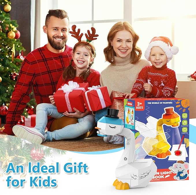 - 【Easy to Use】Simply install three AA batteries (not included), insert a disc into the projector, and turn it on. The image will project onto paper for easy tracing. Adjust focus by rotating the swan’s head 360° until the picture becomes clear. Switch between scenes by changing the disc. It’s designed to be kid-friendly and makes playtime both entertaining and educational.
