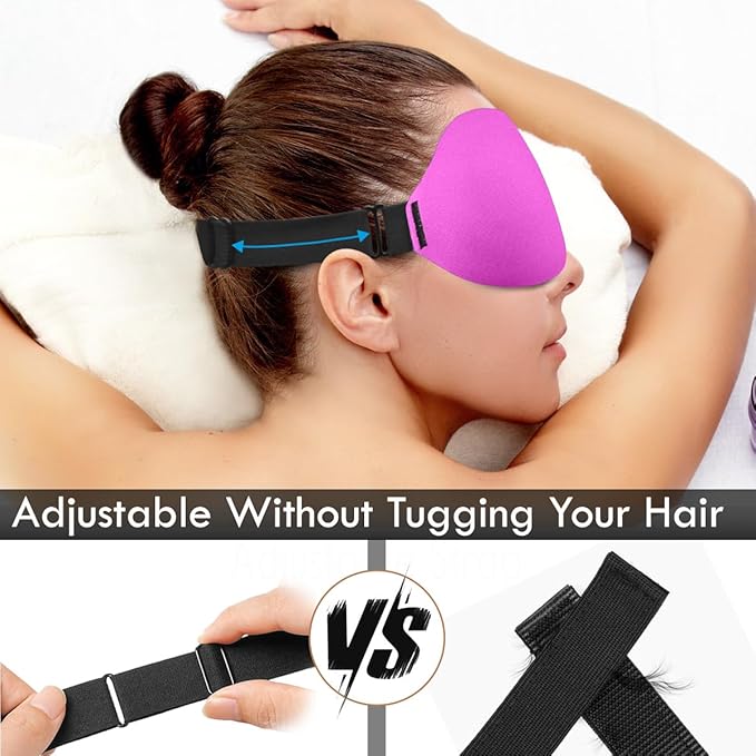 - 5️⃣ Adjustable Fit for Everyone The wide adjustable elastic strap fits all head sizes (19"–28") without snagging hair or leaving marks. Ideal for home, work, travel, or as a thoughtful gift for better rest.